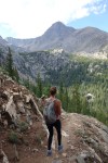 Mountain of the Holy Cross is 14,005 feet above sea level and accessible via a 11.5 mile out and back trail and some scrambling at the end, making it an Moderately Easy Class 2 summit. With 5,600 feet of elevation gain I was certainly feeling the elevation the entire 3.5 hours it took us to summit, while my superman boyfriend barely seemed to be out of breath most of the time.