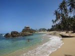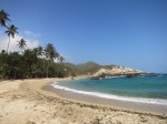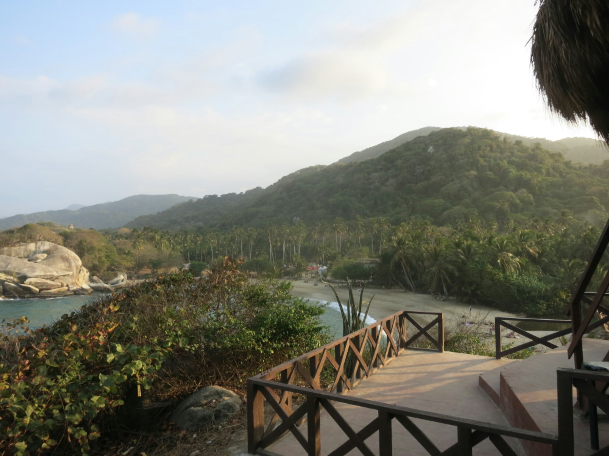 We just finished two (mostly) wonderful days and nights in Tayrona National Park on the Colombian Coast. If you’re adventurous amd don’t mind the 2 hour hike in, sleeping in hammocks or sketchy tents, or cold showers Tayrona is great. For me the difficulties actually made it more enjoyable, but it’s definitely not for everyone. After an hour long bus ride from Santa Marta, a thirty minute wait at the entrance, and finally hiking for 1.5 hours to Cabo San Juan del Guia we were rewarded by this view.