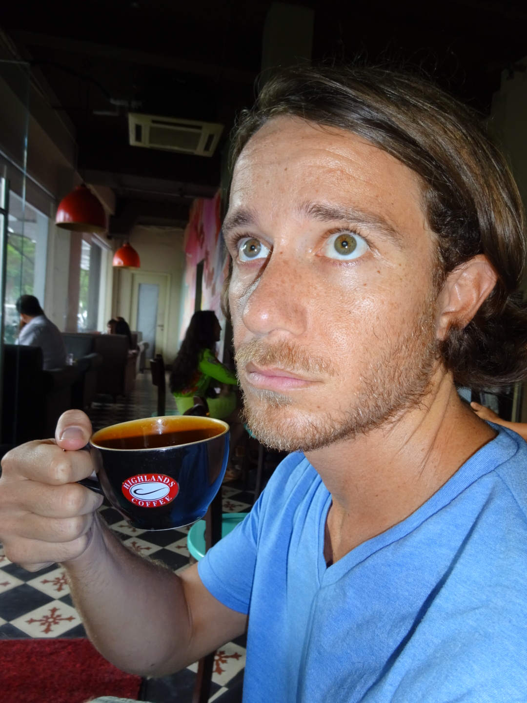 Ben enjoying a vietnamese coffee at Highlands Coffee