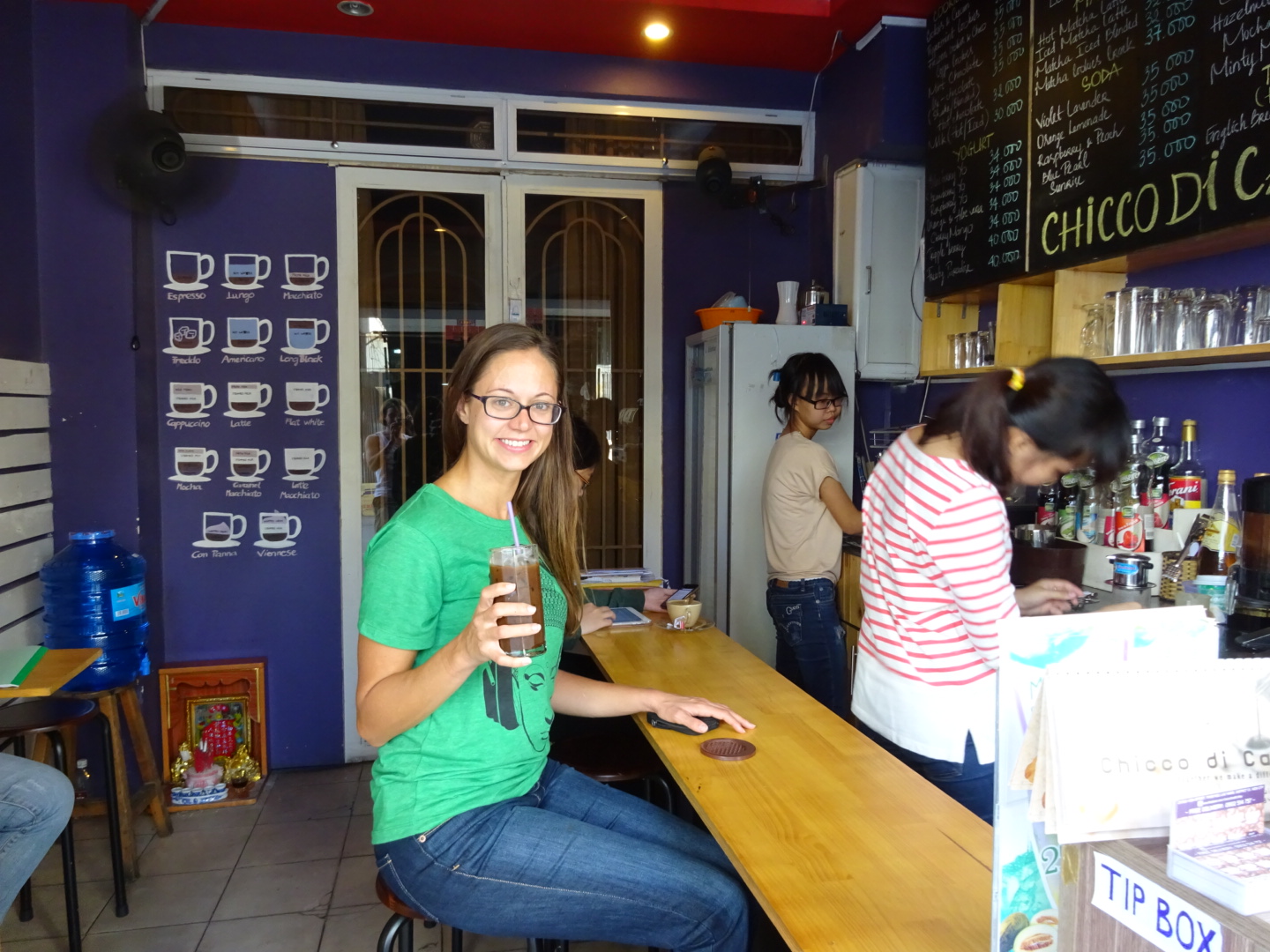 At small coffee shop near our hotel on Bui Vien street